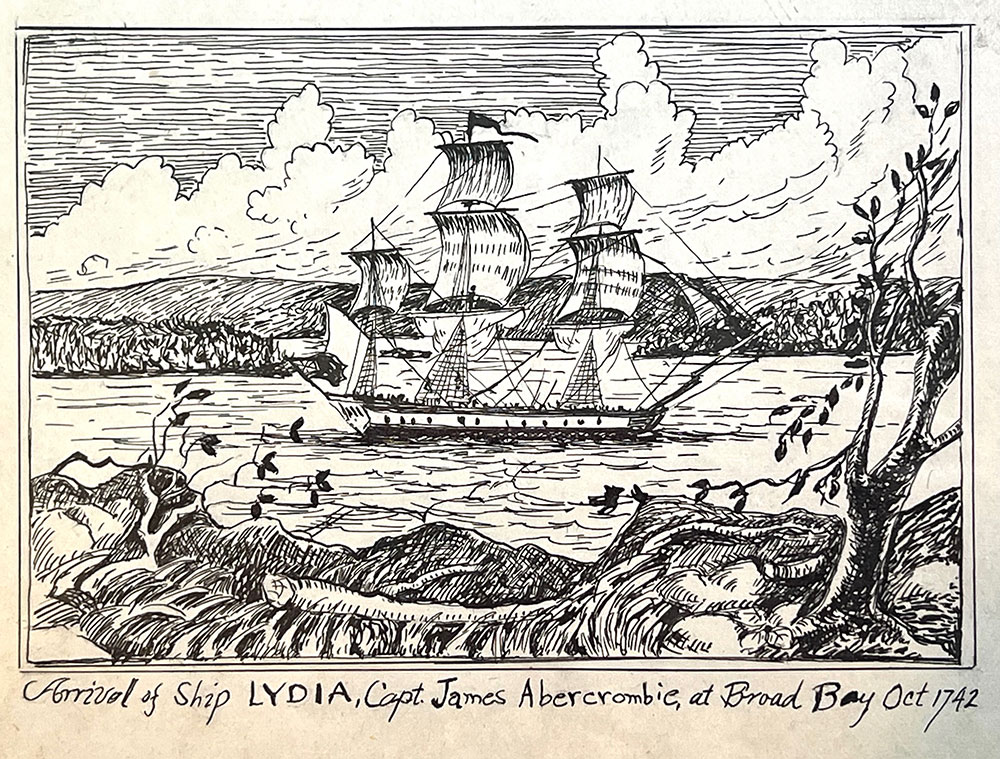 Drawing by Paul & Allison Wescott, History of Broad Bay and Waldoboro by Jasper Stahl, Vol. 1, 1956